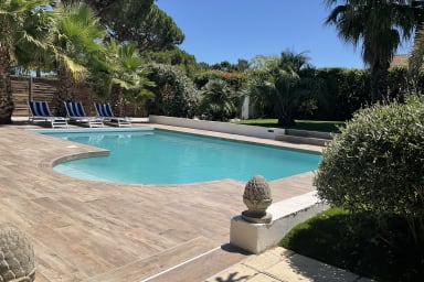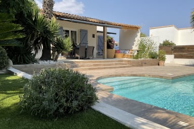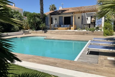 Villa de charme pour 8 personnes, 4 chambres avec studio indépendant, piscine privative et jardin de 900 m² dans le quartier Maraval à Agde. Linge, serviettes et ménage inclus. Parking sur la propriété.